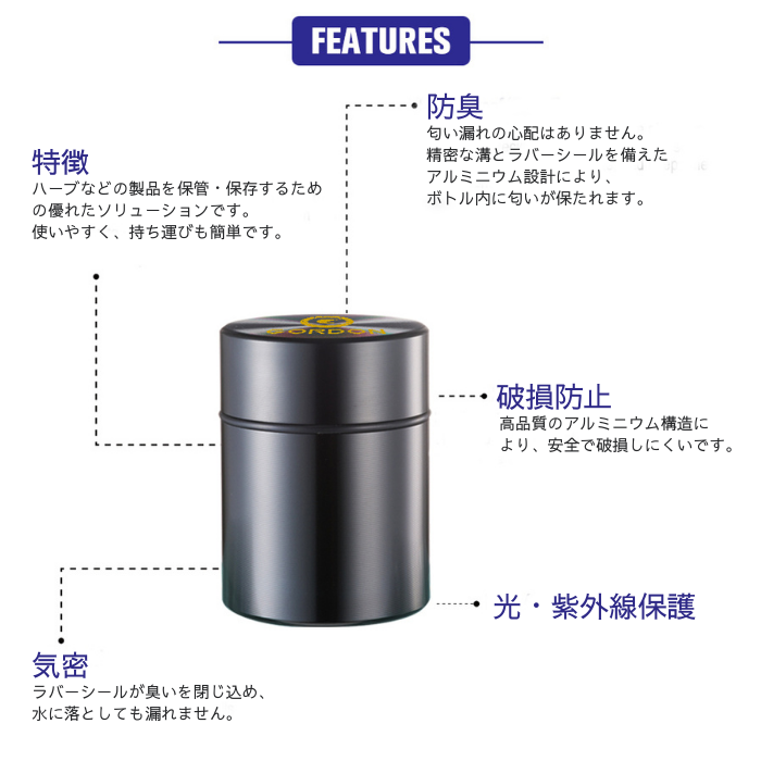 このアルミ製防臭密閉保存容器は、スタッシュジャーを探している方や、匂い漏れ防止の保存ケースを求めている喫煙具ユーザーにぴったりのアイテムです。
